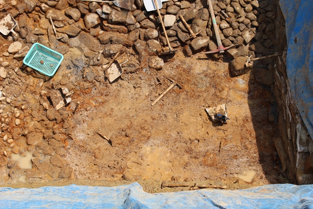 ◆(5)葺石の清掃はほぼ基底石まで下りてきた。(6)礫の清掃