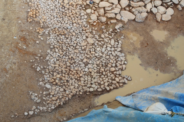 ◆明日で、およそ掘り上がり近くまでいくだろう。上段裾部の石たちを決着させることである。葺石面を確定させ仕上げるのと、攪乱を確認して、攪乱なら掘り上げる。礫面の清掃は手間だが、どこかの段階で、大勢でよってたかってやるべし。