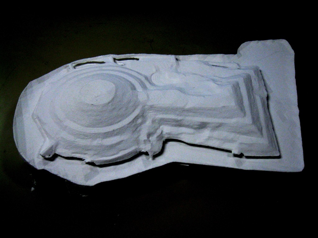 体のハラミが見てわかりやすい。石障が何とかなったとして、同じような石材の腰石、また石室全体の危険度をどう判断するか、整備しようとするときに、石室を見せることが可能なのかどうか、これからさらに議論が必要だ。ちなみに、こっちの模型作りはあんまり進んでいないが、メスリに続き、渋谷向山の石膏模型ができてきたので、写真を挙げておこう。