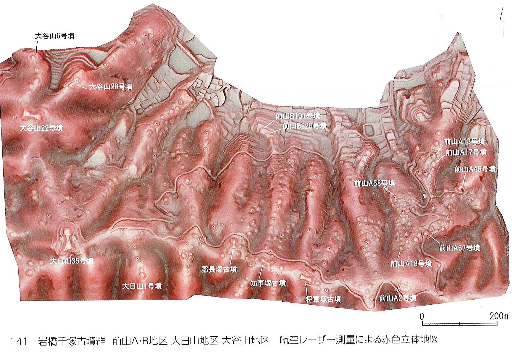 ◆ともかく、風土記の丘で買った図録がすべて面白く、左図はそこから取ったが、ふつう見学する前山地区でなく、井辺地区の方墳に目が行く。これ、とても面白そうである。あと赤色立体地図も作っているらしい。