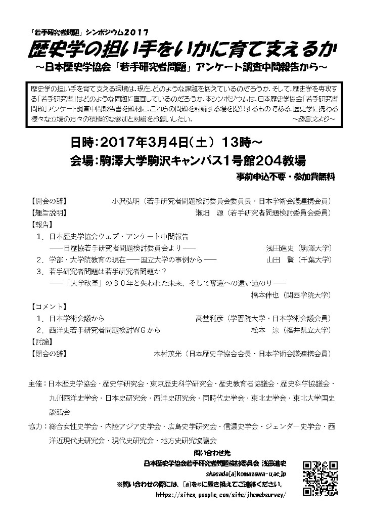日歴協などによる若手研究者問題シンポ