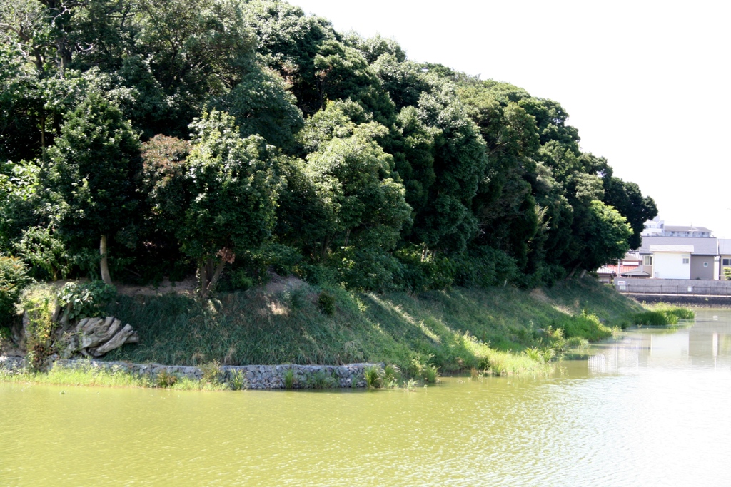 ◆フトン篭は夏場で草が生えて、後円部はあまり目立たないし、その上の植生土嚢は、既に土嚢は破れていたが、垂直でなく墳丘状の斜面ができあがる格好となっており、宮内庁の担当官が言っていたように、確かに景観上はわりと自然な感じに仕上がっている。汀はフトン篭で防御しているが、その上の土壌は次第に流出するだろうから、また先々の問題はあるだろうが、工法も試行錯誤。石垣やコンクリートで固める工法から、フトン篭、洲浜工法など工夫をし、状況で使い分けるようになっている。