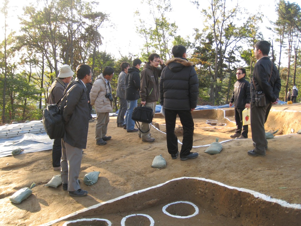◆とにかく日曜日以来の不眠で頭が痛く、つらい。13:35、金浦市雲陽洞遺跡という(青銅器時代の集落跡+原三国の墓が重なる)、丘陵上の遺跡を見学する。民間でなく、日本でいう住宅公団の大宅地造成のようだ。解説によると、北朝鮮国境まで12㎞ほどで、これまで開発が進まなかったところで、韓国政府は、主要都市の次に、周辺地に力を入れて開発を進めているらしい。そちこちの小高い丘陵上に遺跡があるが、ひとつくらい緑地で残せばいいのにと思うが、完全に削平するようだ。