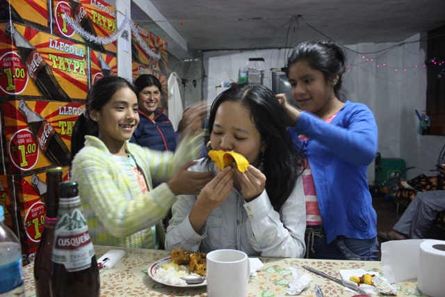◆クンツゥルワシ博物館の迎えにあるゲストハウスに入り、それから食事をしにレベッカさんの店へ。翌日、カハマルカ泊とする選択肢もあったが、本日・明日とクンツゥルワシに2泊することにした。おかげでゆっくりすることができた。このゲストハウスに何室かあり、その一部屋に照屋さんは住んでいる。村で飲食ができるのは2軒くらいだそうだが、食事はほぼレベッカさんの店で取っているとのこと。もう日が暮れた時間だが、そこにむかって歩いていると、村の人たちが口々に「マス~ミ」と寄ってくる(すっかり村になじんで受け入れられています)。