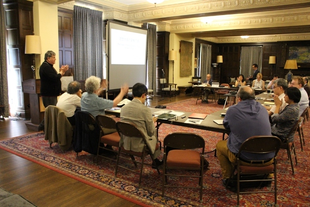 でした。発表者がコの字に囲み、その背後に椅子がならべてあり、オレゴン大の関係の先生のところの院生や、興味ある学生・院生などが自由に出入りする(写真上)。