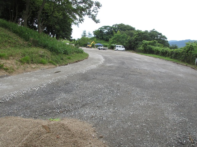 ◆そのあと、今年度というか、昨年度分の繰り越しの整備事業の進捗を見る。昨年は災害復旧が優先されて、事業が繰り越されたのでした。前方部墳頂に保護土をかぶせる。墳丘のえぐられて傷んでいるところを補う。後円部側の周濠の舗装表示、といったところです。