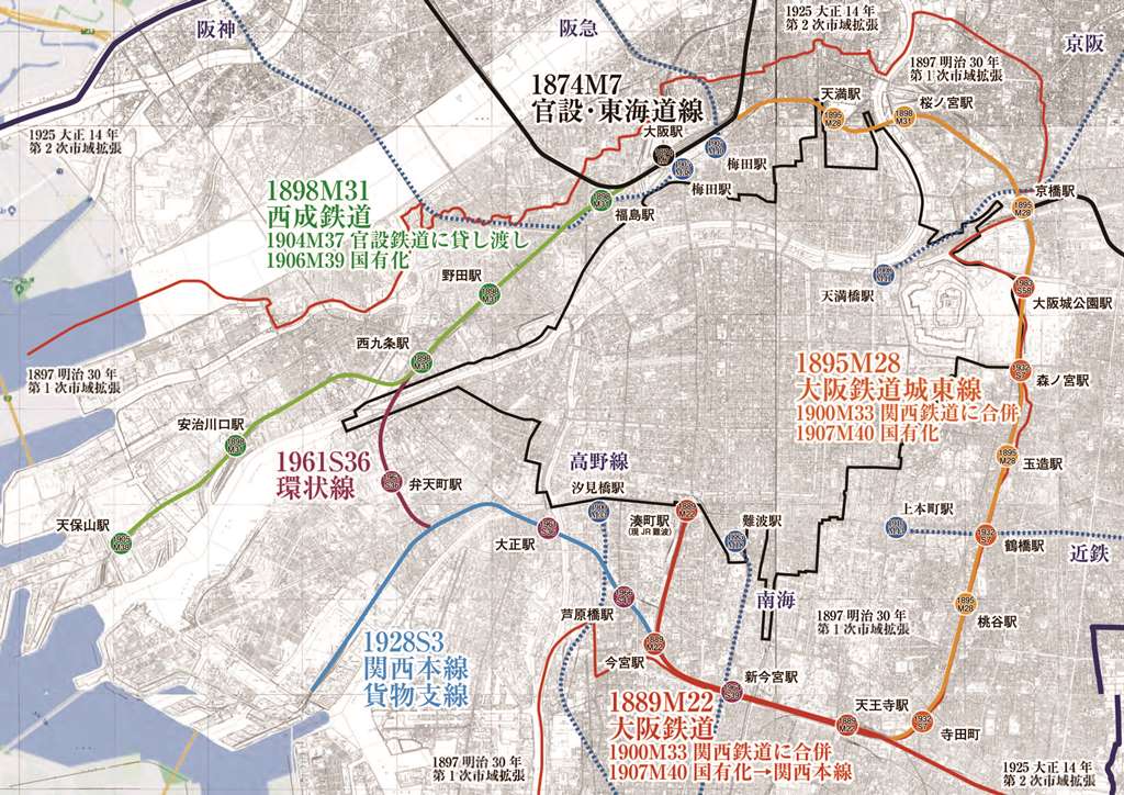 ◆資料はほぼ地図になる。前にガイドプラスセミナー第1回で、豊臣期から近代までの大阪の変遷を同一範囲、同一スケールで、各時期の地図にささやかな情報を書き込んだ図がベース。A3で14枚ある。(1)10月の戦略的研究で、これに、大阪市文協の作った弥生から中世の古地理図をはめ込んだ。A4で8枚。この時は科研報告の巻頭カラーをスキャンしたが、そのあと画像の提供をいただいたので、それに更新する必要がある(未)。(2)豊臣期から近代も、この間、いろいろ修正したり情報を加えるなどしてきた。(3)大坂の近世絵図を出版物から主要なものはぜんぶスキャンした。これを全面的に組み込むことはできないが、多少は紹介したいところ。(4)いま博物館実習で、学生が大阪環状線に取り組んでおり、その関係の図も作ったので、近代のところに組み込む。