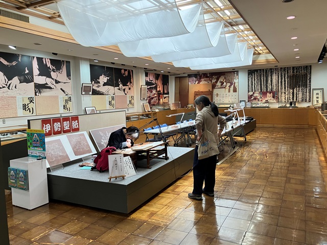 伊勢の墨と型紙のふたつを取り上げたもの。展示、作品ギャラリーがあり、また型抜きの体験ができる。ラッキーなことに、墨でなく、型紙切りの技術をもつ方の実演の日であった。この方には、結局手を止めてしまうことになったが、けっこうな時間話をうかがうことができた。