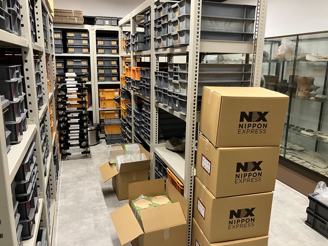 実測をさせてもね~、と毎年思いながらも・・・。先週は展示ケースにならべていた資料を開梱して配列してもらった。今回も、1209収蔵庫の整頓をしてもらう。糞置の遺物、角田さんの縄文土器、難波宮の遺物、考古学研究会の遺物。そしてその他もろもろ。狭い収蔵庫だが、いまのところあふれていない。引っ越しで、アバウトには分別できているが混在しているものをグルーピングして棚に再配置する。コンテナに表書きしていないものは、展示ケースから出して梱包したものなどがあるので、それらも平行して出していく。
