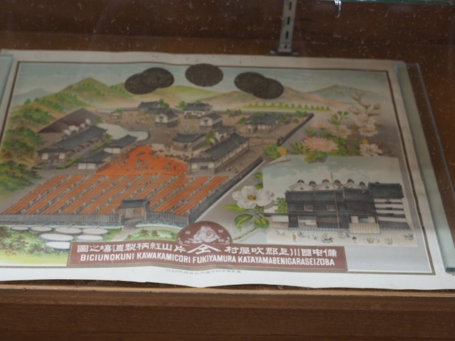 ◆本家(重文)に行くと、奥の倉庫が展示施設になっていて、道具やら、帳簿などの古文書や、見本や、価格表などがならぶ。ベンガラ製造の模型展示もあってわかりやすい。ベンガラの作り方は、このあと本を買い、のちに読む。それをまとめればよいのだが、できていない。吹屋の銅山ではナントカ鉄がともない、