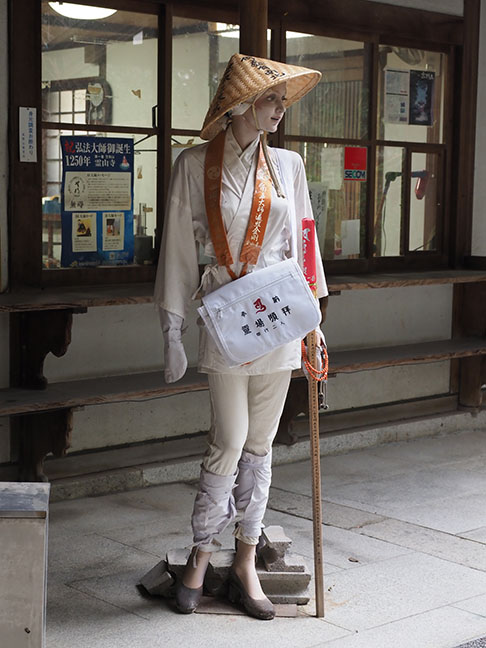 、松山駅に向かう。◆残る3名は、まず石手寺。ちょっと雨模様。巨大な藁草履があり、1円玉が無数に差し込まれている。「ぼけ封じ」のお守りを購入。焼き餅を食べる。そこから高輪半島の山中を抜けて今治城へ。
