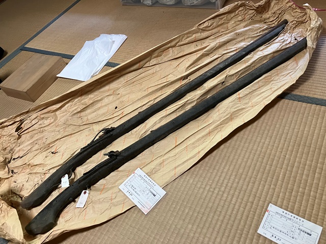 の実家を売却する予定なのだが、その片付けの一環。刀があり、その登録証を探したり。そうこうするうちに、火縄銃2丁が出てきた。これ幕末の頃のものだろう。江戸時代から長谷宮にはいない。前に聞いた時には、天誅組の乱のあと、十津川から出てきたとか。銃身は錆でけっこうぼろぼろ。これは平成5年に登録されており、登録証が出てきた。時期から考え、家の前の国道の拡幅に際して、古い家を取り壊し新築した時期なので、岳父にとっても、思いもよらないものが出てきて、先祖のもので捨てられないと、登録したものだろう。