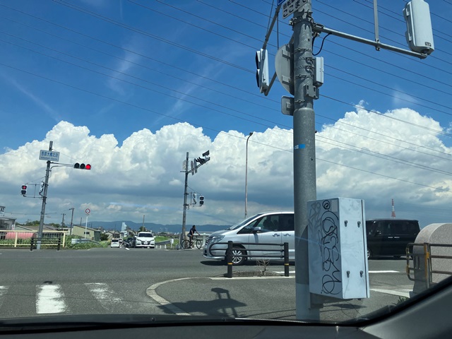 ◆翌日の日曜日は長く行ってなかったカミサンの実家の草刈り。朝5:50に出て、7:20くらいに着いたのだろうか。そのあと10:10まで草刈りをやりました。そのあとの予定もあったので、途中、10:15までやって出ようと話をしていた。が、疲れてきたし熱中症も怖いので、少し早く切り上げた。着ているものはすべてグズグズの汗まみれ。シャワーをして着替える。10:35には家を出る。槇を買いに行って墓参り。そこから職場に忘れ物をしたので鍋谷トンネルを抜け阪和道経由で取りに行き、そこから今井町へ。写真は職場近くの大和川沿いから、東の空にモクモクと沸き立っている入道雲です。