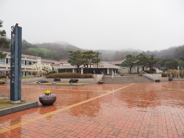 ◆そこから山越え。国立博物館は丘陵地の北側、宋山里古墳群は南斜面。新しく、なんとかという展示館もできているが、まずは古墳群手前の武寧王陵展示館を見て、これは確かにあったなと思い出した。上に少しあがって武寧王陵の入口を見る。ひきかえし、新しい展示館を見る。駐車場があり、観光案内所があり、そこの女性がすごく親切で、荷物を置かせてもらい、さらにタクシーも呼んでもらった。タクシーで錦江を渡ったむこう側のバスターミナルに向かう。