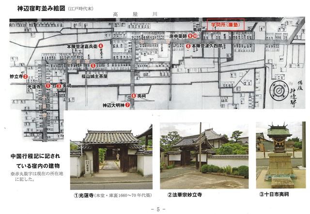 ◆山陽道はいくつか屈曲し、それに沿って町場があるが、東側の方が残っているように思う。観光駐車場がよく整備されておらず、うろうろするも、廉塾・菅茶山旧宅のところに駐車場ありとなっていて、ここかな~という空き地に止める。いま修理事業がなされていて、その工事現場というところである。