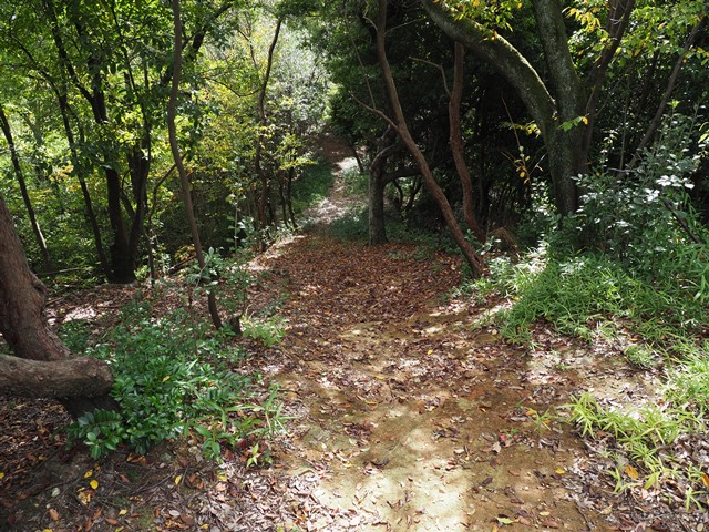 ◆公園から歩いていくと(これも封鎖している形なのだが・・・)、前方部にたどりつき、そこから後円部に向かう。調査時の風景は覚えていないが、調査区のあたりは当然伐採して開けていたんだと思う。しかし、しばらく経つと、山なんで草木がかなり繁茂している。写真は後円部から低い前方部を望んだものだが、ようわかりませんよね。