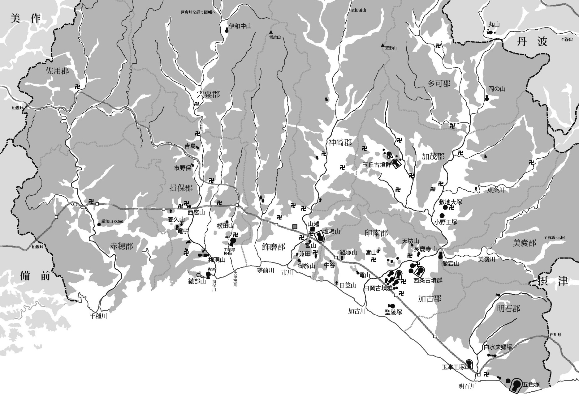 話をということで、大昔の加古川でしゃべった時の資料をひっぱりだしてきて、古墳の分布図をイラストレーターで作り、あいかわらず当日資料持ち込みとなりました。