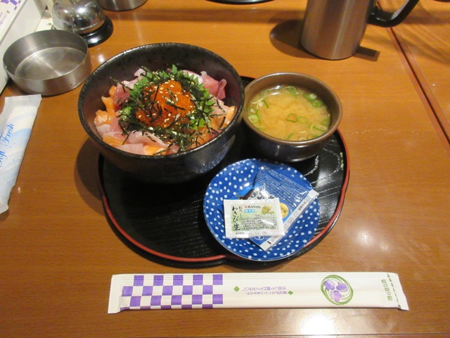 ◆そのあと葛井寺へ。駅南の駐車場に入れ、アーケード街を歩き、昼ごは んの場所を探す。海鮮丼500円。ノンアルチューハイをもらう。