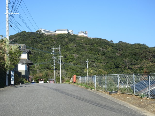 ◆下島北西の富岡城跡に登る(写真)(手前に熊本県1の発電所)。発掘調査を重ね、復元整備事業がなされている。その調査の歩みや苦労が、ふんだんに盛り込まれた苓北町歴史資料館がある。それとは別に、天草の自然を含めたビジターセンターがある。