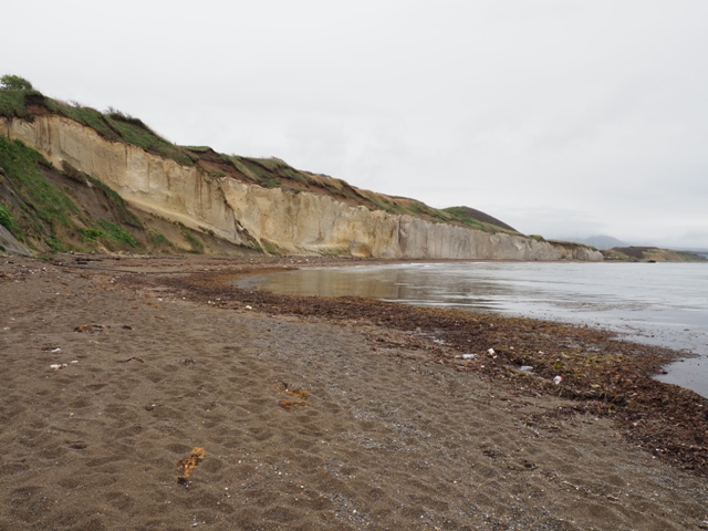 ◆開陽丸の記念館に行くのが主目的。が、その前に北上し、乙部町の滝瀬海岸へ。調べていなかったが、たまたま引き潮で、崖下を歩くことができた。しかしこれは新しい砂礫層だな。本物の白亜海岸は、以下、ウィキ。