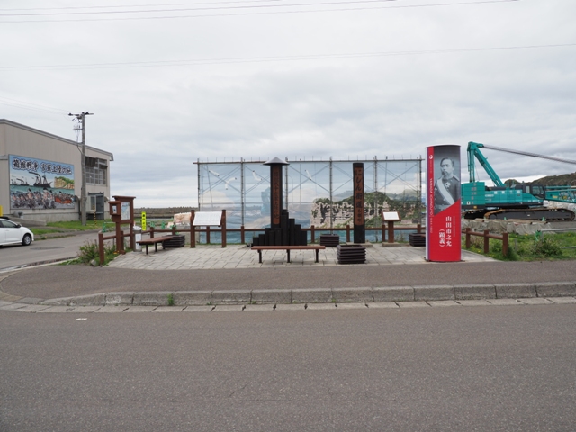 ◆で、乙部を通過していると、官軍上陸の地とあったので、行ってみる。「官軍」というのもな~とも思うが・・・。函館戦争の経過について、詳しく知っているわけではない(開陽丸記念館でそれを学ぶことになる)。まあとにかく、1968の年初めに戊辰戦争が始まり、籠城していた会津が降参したのが11月か。その前に江戸が新政府に明け渡されたのち、榎本ら2000人が江戸を逃れ蝦夷地に渡り、函館も松前も押さえた。開陽丸の座礁沈没が11月だったか(松前城を奪われるも藩士らが江差で抵抗を続けていて、開陽丸はその支援のためにかけつけ、暴風によって座礁・沈没となる)。で、最終的に「官軍」がこの地上陸し、旧幕府側が降参するのが、翌年春のこと。で、この間、4か月ほどは戦っていないようだ。なんでやろと思ったが、それは冬場は津軽海峡が荒れ、蝦夷地に渡れなかったということのよう。