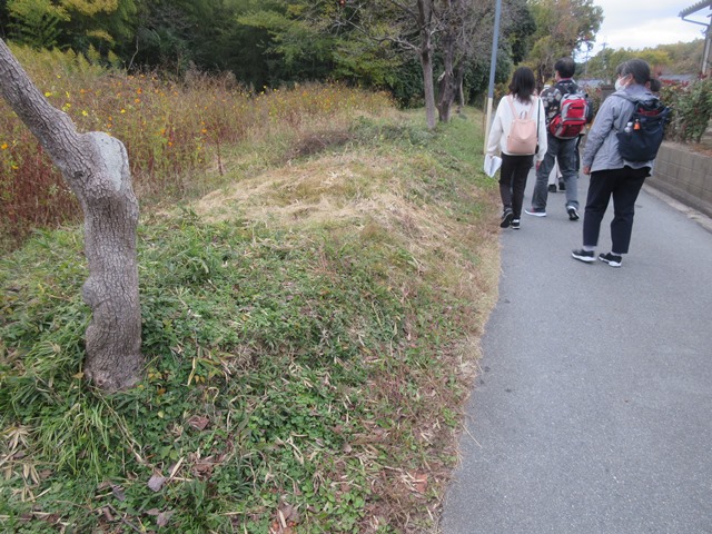 ◆それから北辺坊と条里との境界の話を聞く。北辺坊の街区と条里地割の説明があった。ここまでくるとまだ田んぼがあり、条坊街区と、その外の段差を見ることができた。
