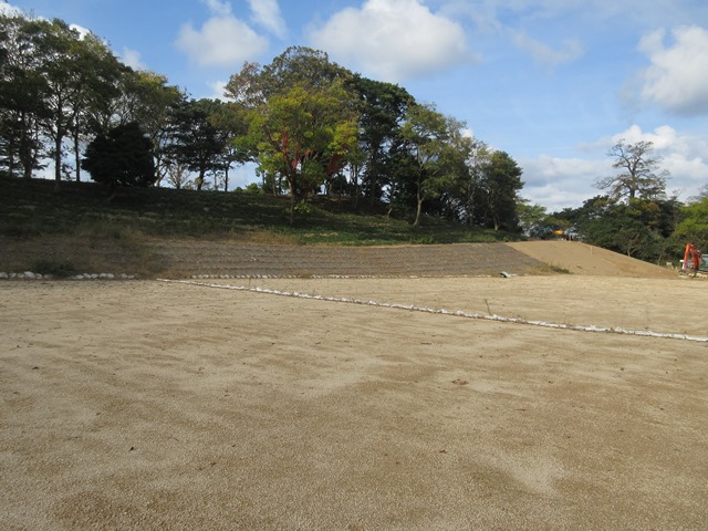 ◆前方部コーナーの傷んでいるところについて、墳丘を補う盛土が進んでいる。古墳を作っている感覚である。かなりカッコよくなった。