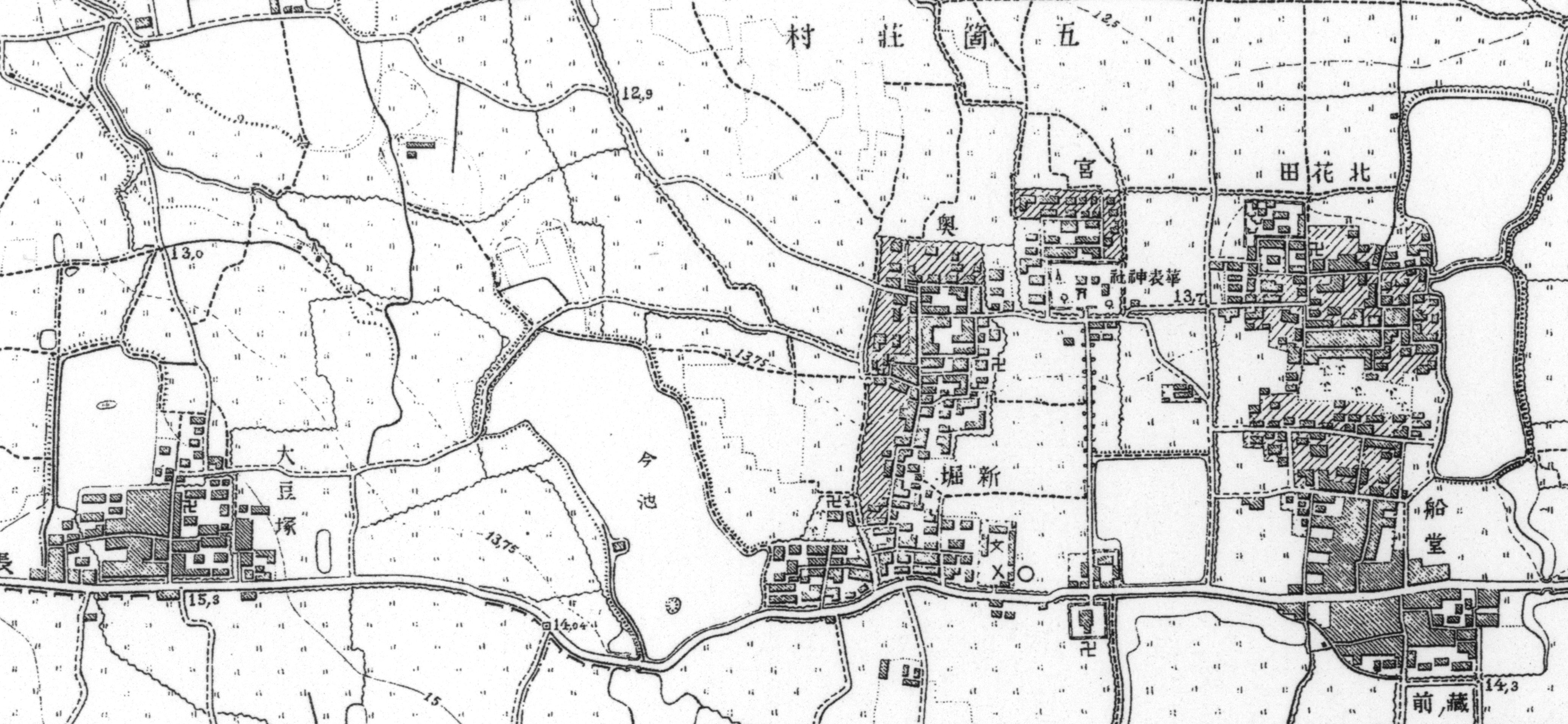 ◆ときはま線から西に入り、小豆塚まで行く。阪和線堺市駅の近くなんですね。ひとつまえの地図にあるように、なぜだが真ん中が空いていて、神社があり、コの字に集落がある。小豆塚はそこから西に離れたところ。