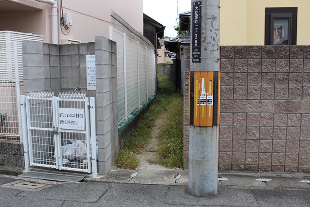 ◆下の写真、どうも地図からすると用水路を埋めたものらしい。村中をあるいていた時も、この細道の先を横切った時、こういうのは赤線化か青線やで、里道や水路で公有地だから、こうして残るんやで、と言っていた。それが長尾街道に戻ってきたとき、続きがここに現れていたわけです。
