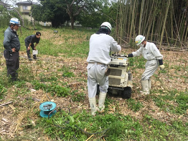 ◆翌日は830スタート。2日間で十分なポイントをやってもらうには、ほんとうは別日に測量しておき、業者によるサウンディングを朝からスタートさせるべき。前に前方部西側をやった時は、けっこう測量がうまくいかず、業者が待っている状態になった。今回も同日朝の測量となった。