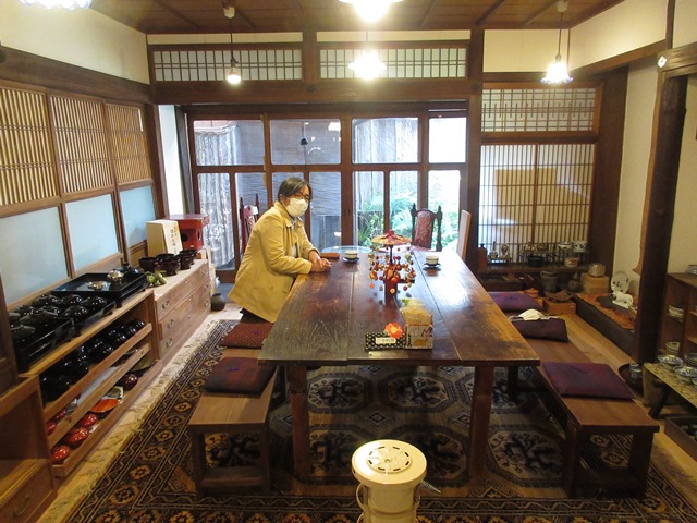 ◆そのあと黒江。黒牛茶屋で日本酒・黒牛を買い、街並みを歩く(2回目)。食事に黒江ぬりもの館に入る。前は正月などで、店なども閉まっていたんだろう。古民家を使った食事処はなかなかよい。また、裏通りから行ったが、表通りの大店も、飲食店になっていて(べっちんさん)、なかなかよい。話を聞くと、4年前にオープンしたのだとか。前来たときにはなかったように思う。