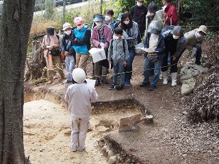 ◆現場はなかなか行けてません。立命館大学3回生が頑張ってくれ、残り課題を列挙し、それをつぶ していってくれている。あともう一息。来週には埋め戻しが始まり、ダメ押しだけが持ち越しとなりました。水曜日に、2限後、13:30くらいに現場に行く。この時は2トレ葺石平面を直した。来客あり。5限の博物館実習に戻る。木曜日は、大阪府高齢者大学校が午前で、そのあと現場に向かい、1時間くらいだったか、2トレの埴輪立面を書き、葺石立面の木の東側をやっ