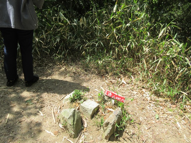 ◆なんとかケーブル駅に到達し、その奥に進むと、高安山気象 レーダーがあり、その脇に高安山ピークが。が、気象レーダーに行く車道が切り開かれて、その脇の高安山トップを見逃してしまいそうになる。標高487m。この道路、自然破壊であり、高安城の破壊ではないだろうか。