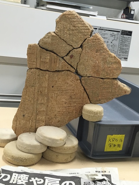◆16:30に職場に戻り、昨日壊した家形埴輪の接合にかかる。が、7片がバラバラなので、2段階に分ける。第1段階は3つのパーツへの接合。これに単体1をあわせ、4パーツ。それを1時間ほど経過後、一気に組み上げた。15分ほど手で持っていたが、あとは離しても大丈夫そうなので、これで帰るとしよう。明日は9:00スタート。