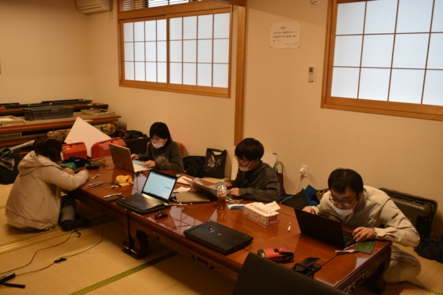 ◆17:30で終了。河合町Yさんが現場に。片づけ、憩いの家にマシンは置き、図面とバッテリーなどだけ持ち帰り。バイクの伊藤さんをのぞき、5人を乗せ王寺へ。岡本を王寺駅に送り、4人を東横インに。前半4人5泊の宿泊費