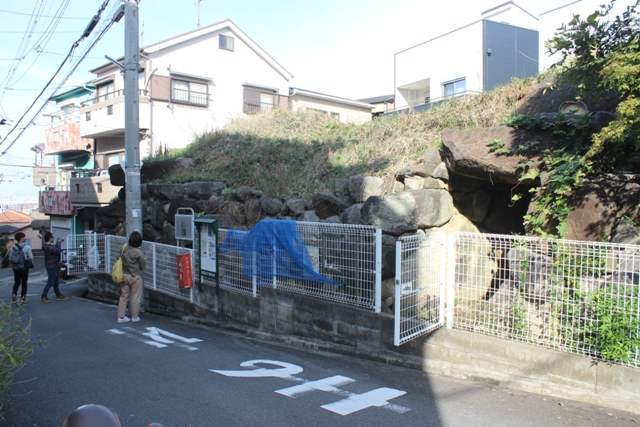 集合は近鉄石切駅9:00。6人、自分をあわせて7人。夫婦塚はすぐ近く。夫婦塚として片袖の西石室の図ばっかりみていたが、片袖が2つ並ぶ。看板では双円墳の可能性を示唆する。墳丘は削り込まれて判断のしようもないが、南面して2つの片袖石室が開口する姿は、確かに夫婦塚というにふさわしい。