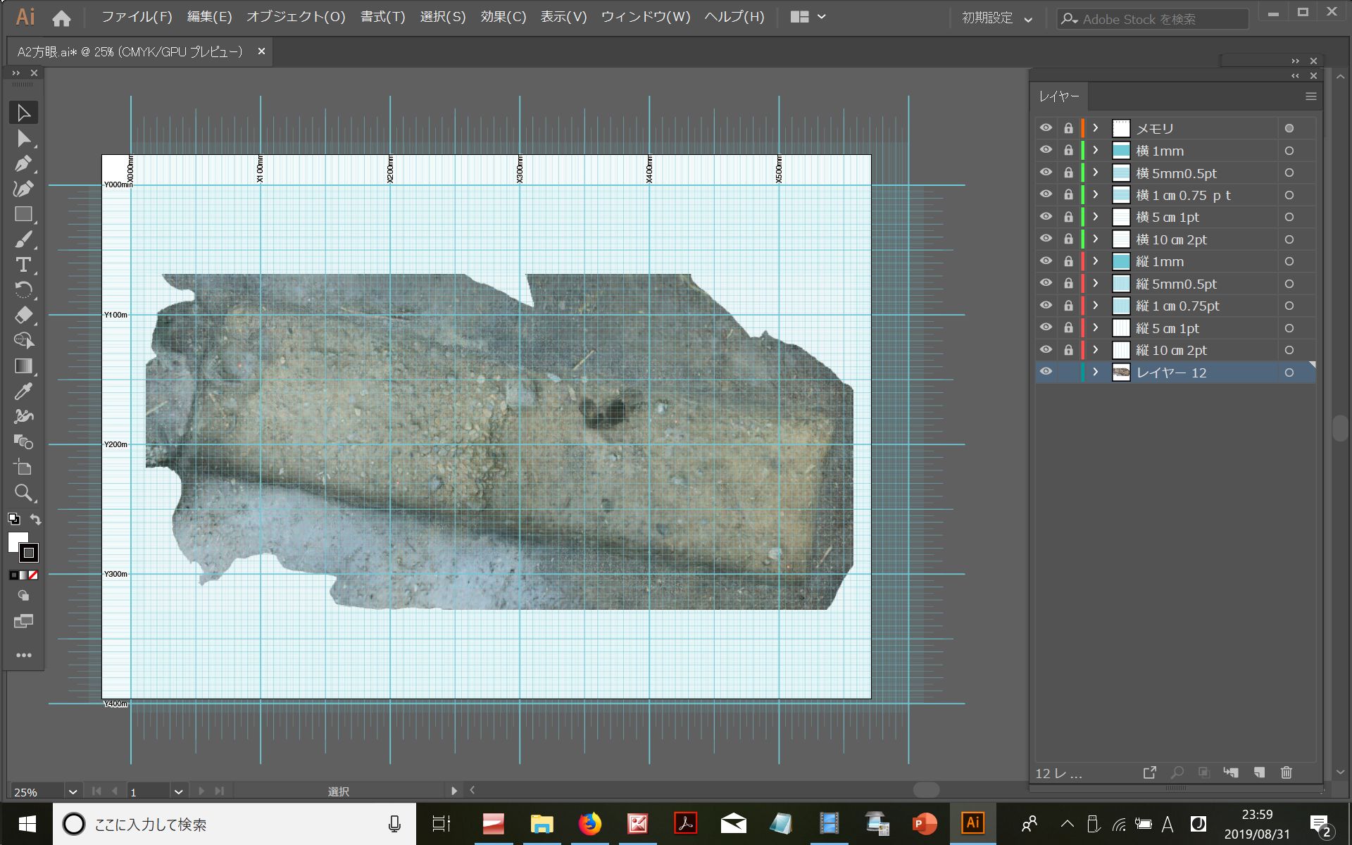 ◆こうして方眼イラレに画像を配置し、正確に位置があえば、ミリ方