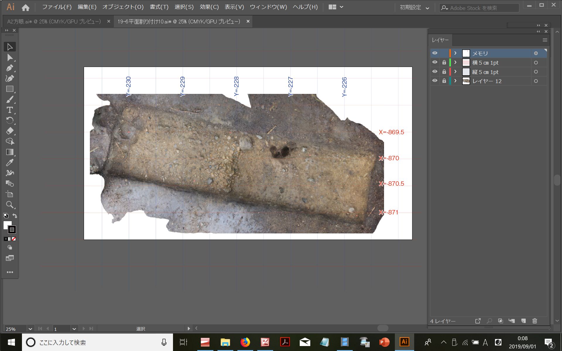 ◆で、これを方眼上で位置をあわせる。A2サイズの方眼をイラレ