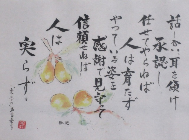 ◆写真は美里園にかかげてあった格言。山本五十六だって。