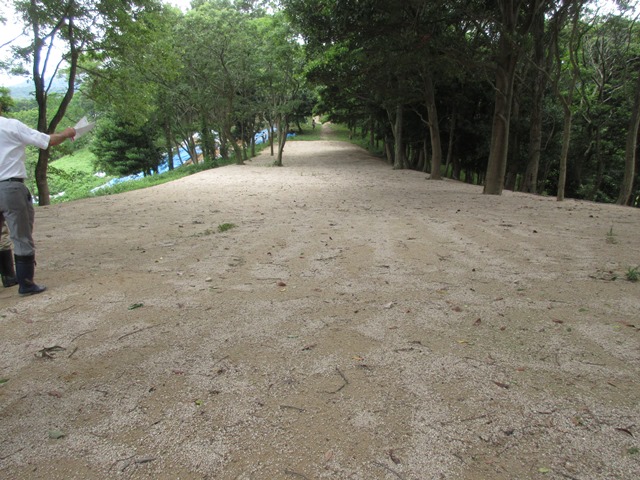 ◆墳丘はきれいので、あまり人工的に手を加えない。周濠部については、畑地だったところを表示する。あと畑に接して削り込まれている裾部に土を補っていく。樹木は、少しずつ伐採し、シルエットが下からよく見えるように、間引きしていく。