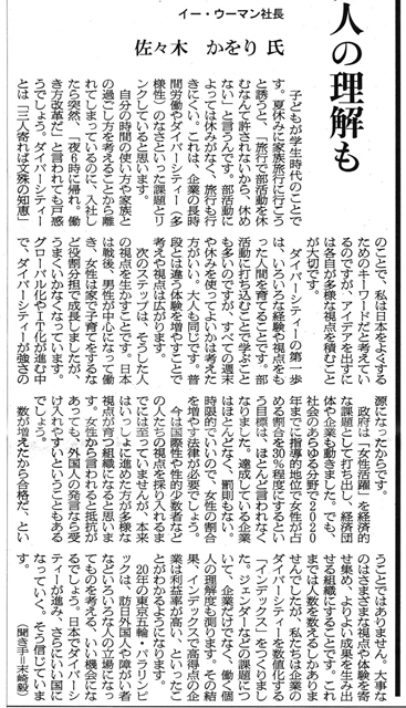 ◆ダイバーシティーというのは、3人寄れば文殊の知恵。いろんな考え方を持ち寄って議論する。そのためには、いろいろな経験や視点をもった人間が育っていな