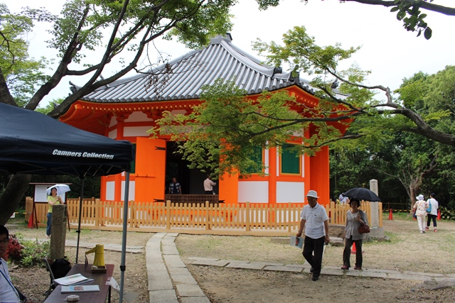 登り口のところには、八幡市教委の人がたくさんいる。みな古墳を見に来た?、と思ったら、ふだん未公開の八角堂を内部公開するというの で、人が集まっているのでした。