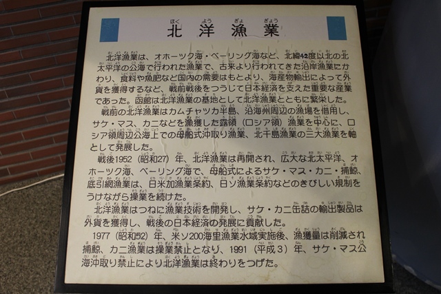 が出てきて、いろいろ質問をし、楽しく説明を聞 いた。マルハ、ニチロ、もひとつなんだっけ、缶詰等の水産加工の大手としてはこの3つとのことで、函館にニチロの本拠があった。オホーツク海の北洋漁業の基地が函館にあり、これも函館の重要な歴史だ。いや~活気があったでしょうね。青函連絡船はあるし。
