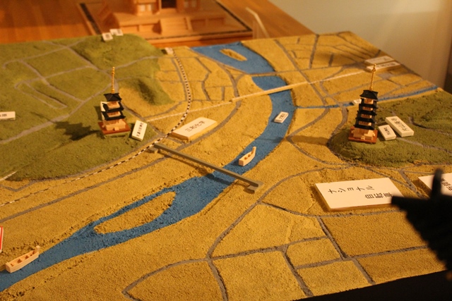 和川の北には鳥坂寺の塔があって、ゲートになっていると説明したが、今回の企画展でそれを示す模型が作られていました。