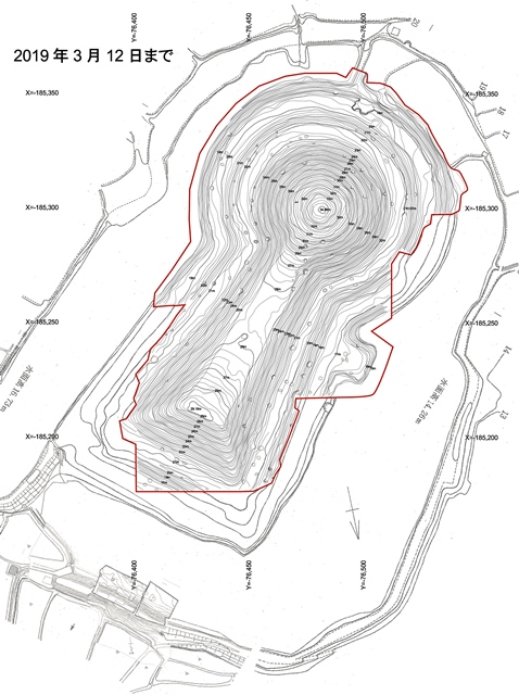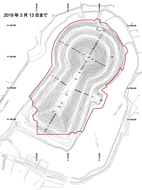 ◆最初、前方部東側の基準点2点、次いで後円部の基準点1点の打設、測量。こういうのは、最初にマシンを立てた時に次の1点を打っておく、ないし前日の終了の手前で、明日にむけての手を打っておくべきこと。まあ、こういうことも修行です。前方部東はわたしとテジョン、後円部は大澤・上野、前方部西は阿部・山﨑、この2人3班で進める。無理もあったかもしれないが、それぞれ躍進する。