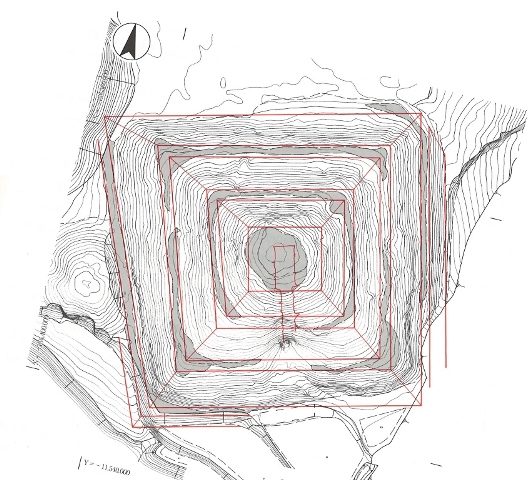 ◆まずは測量。自分らではせず業者委託。会社はキャド上で作業をし、データ納品もキャドデータ。土木に持っていったら開くかもしれないが、自分らでは開けないし、いじれない。PDFのアウトプットのみ。うちは、測量を委託した時も、データをイラレで納品してもらってます。たとえば津堂城山(うちには地上レーザのデータがあります)。最初、イラレに変換してもらったら、巻き巻きデータで出てきた(説明するのは難しいが)、これはダメといって直してもらう。これで等高線がベクトルデータになったイラレデータで納品してもらえました。人工物などのレイヤーも分けてあるので、リーフレットにする時は、こちらで仕上がりの大きさに応じて線の太さを変え、いらない情報を消すなどのこともした。