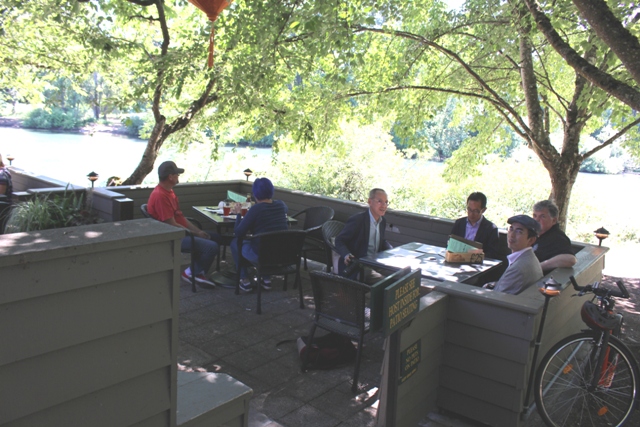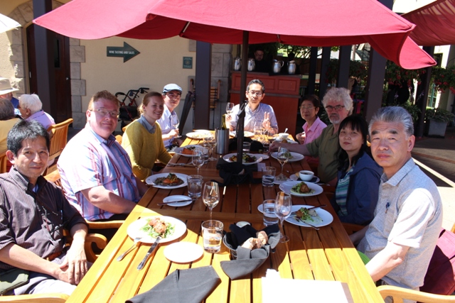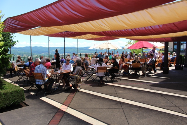 さんの車2台で、キングエステートへ。ユージーン南へ行ったロレインというところ(約20キロ)。外のテーブルは予約できないのだが、昼前に着いたので、8人席を確保できた。