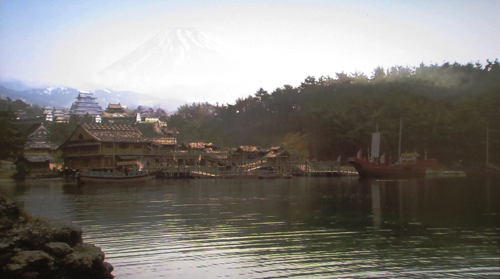 ◆笑えるのは、倭の本拠地らしい遠景描写で、むこうに富士山らしいものを置いていること。このシーンがまず出てきた。そしてその次に、高句麗王が倭に入っていくところ、倭の本拠に近世城郭(姫路城?)が建っている(画像)。これ、いちばん笑えました。解説の最後には、半島を西から南に回り、百済まで進撃し、そのあと、島根県あたりにのびる矢印が図示されていた。