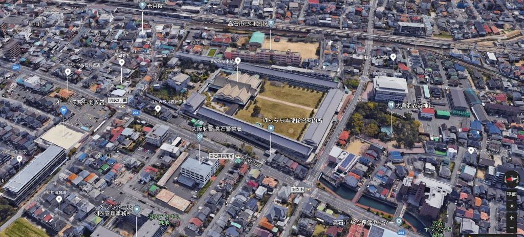 が出現する。これか・・・。っ前から和泉市史で地図をいじっていると、この海浜砂丘の沿岸沿い高台が高石市の中心なわけだが、地図に四角い、たとえば一見すると城郭か?と思われるような堀で囲まれた方形館があるのを認識していた。お寺なんかな~、と思っていた。グーグルで確かめればすぐわかるんでしょうが、やってこなかったわけです。ほんみち、本部・・・。