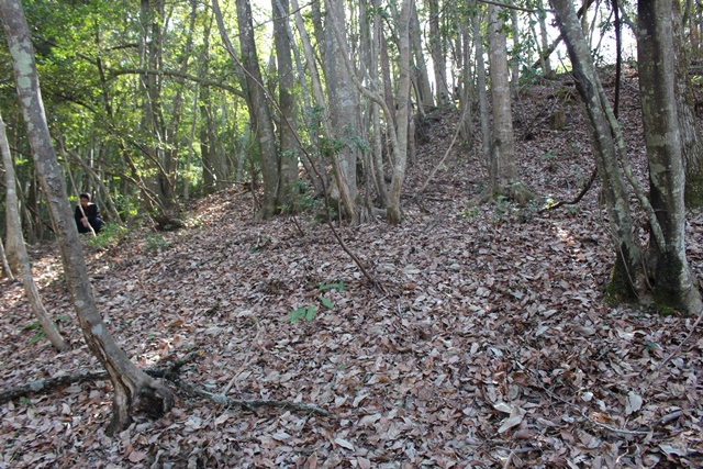 っていた時に見に行った記 憶があるが、それ以来。それも連れて行ってもらったわけで、ほぼ何も覚えていない。場所の印象も、どこから古墳にアプローチしたか・・・。道路から山を上がり、別尾根を下ってたどり着くが、下からまわっていくのがいいのでしょう。陸橋と、下段の葺石の始まりを何となく覚えている。4回生のIさんが説明してくれる。2号墳に取りつく陸橋って、いったい何なんでしょうか。この古墳も2段でなく、意識としては下段があるようにも思うが・・・。